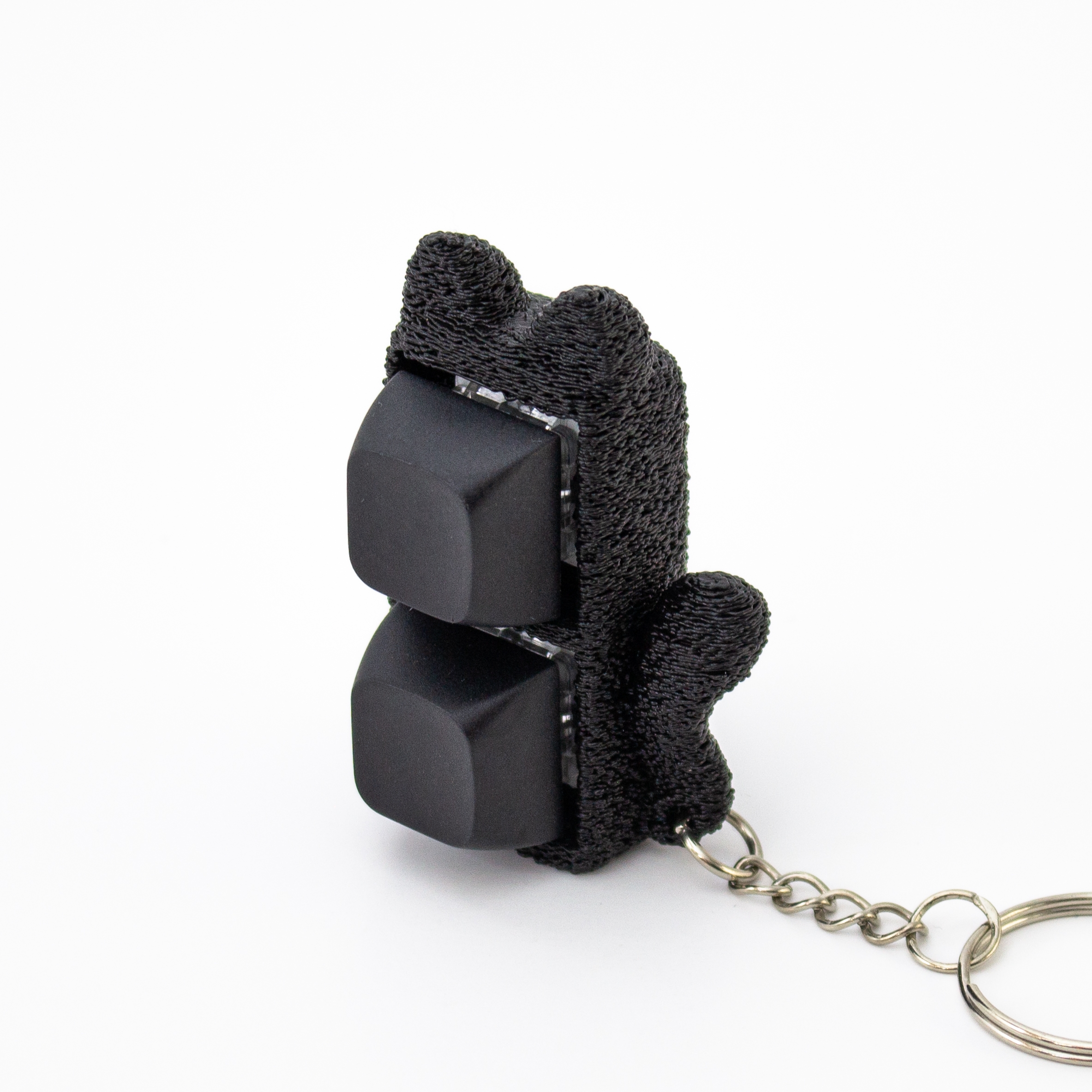 Za jakość i detale odpowiada firma Cows in Clouds. Brelok wyposażony jest w klikające przyciski, które wydają hipnotyzujący dźwięk klawiatury mechanicznej!